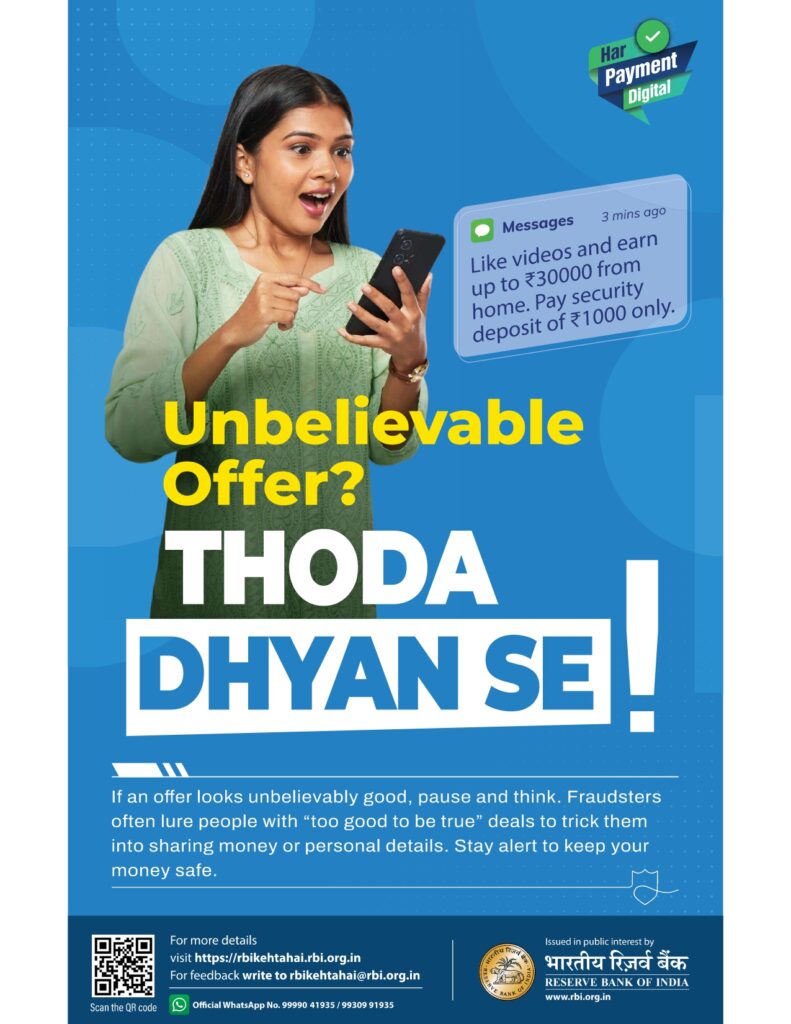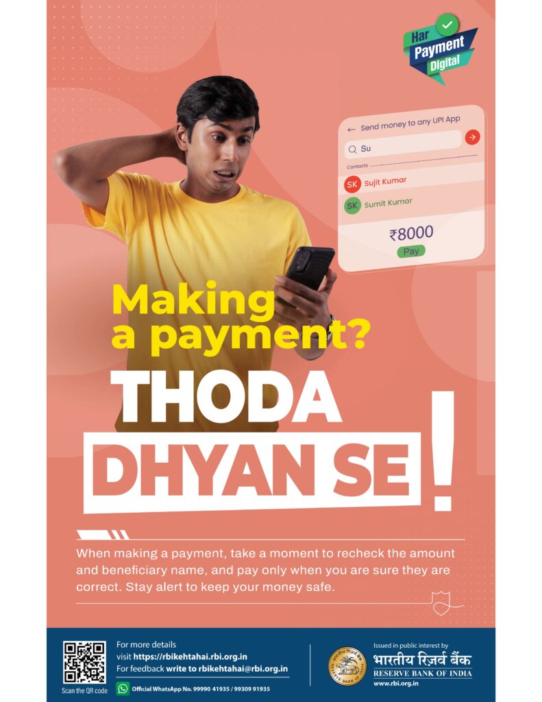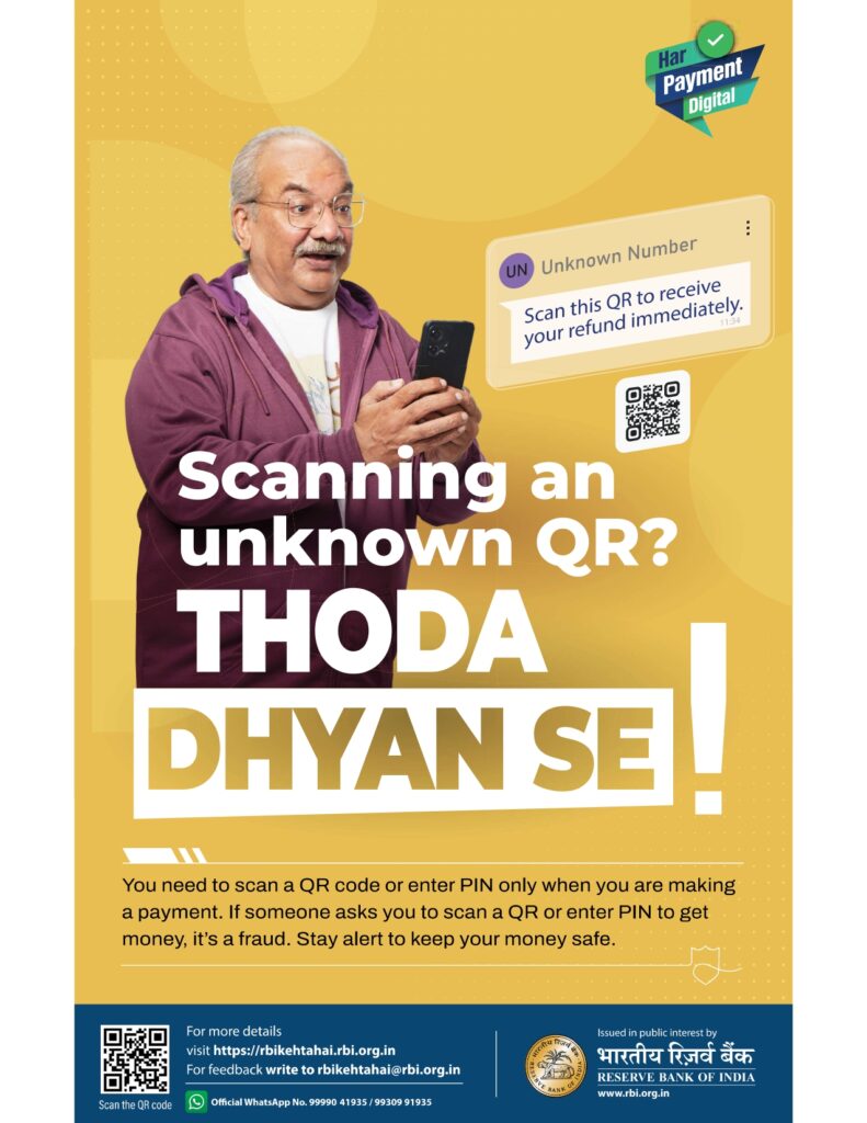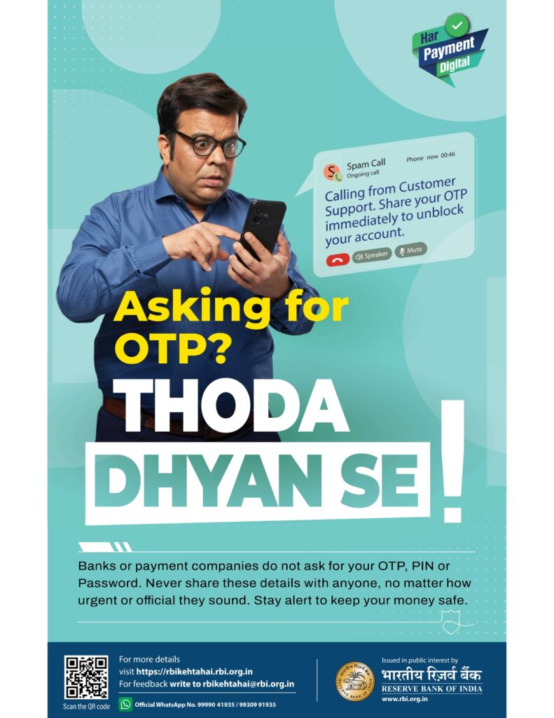 - Safe Digital Banking: Be careful with OTPs, UPI PINs, internet banking passwords, and not share ATM credentials.